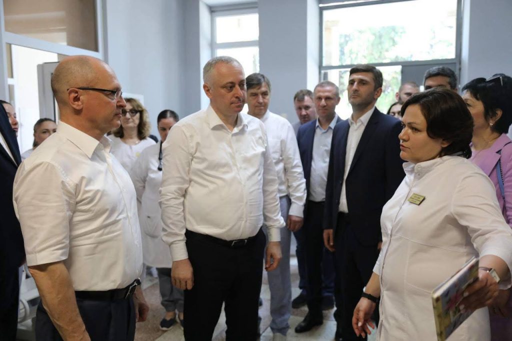 Президент Абхазии Бадра Гунба и первый заместитель руководителя администрации президента РФ Сергей Кириенко посетили центральную районную больницу в городе Гагра.